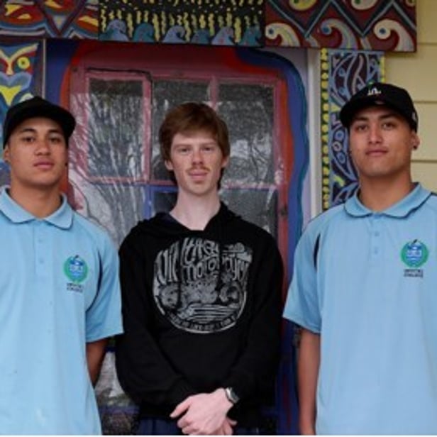 James Rolleston, Jarard Gullett, Wairangi Heriwini. Three outstanding young artists of Opotiki Children's Art House. Great youth supporters standing up for children's creativity in their town.